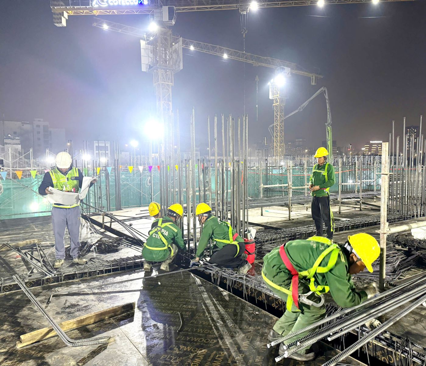 - Thực hiện lắp dựng cốt thép tầng 3 (dầm, cột) theo thiết kế, ghép cốp pha sàn cho các khu vực chuẩn bị thi công đổ bê tông tiếp theo.